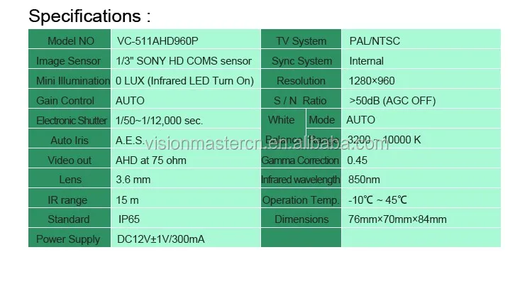 1/3" Sony CMOS Sensor 960P Waterproof Night Vision CCTV Bus Camera