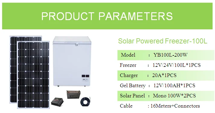 | Product name | solar freezer | • Fully hermetic domus compressor with integrated control electronics, *cooling performance:-18℃ at 30℃ ambient temperature *total freezer with drawers *automatically turn off when low input voltage to protect product *With single top door and door lock *enviroment-friendly refrigerant R134a *connect with DC power source directly e.g solar power source *connect with AC power source through an AC/DC adaptor *High temperature resistance design and energy saving design | |