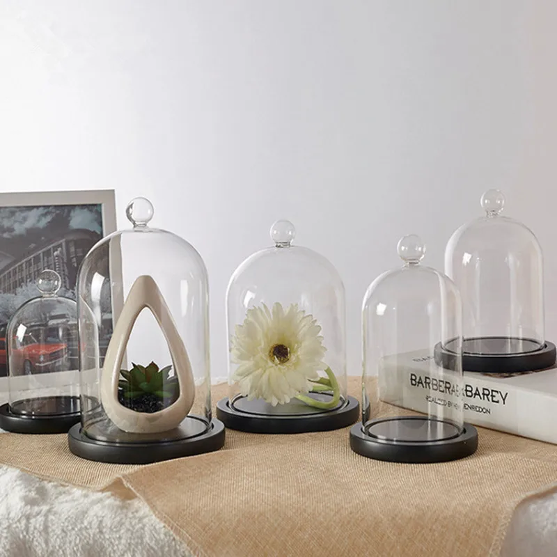 Консервированный Круглый стеклянный купол с пробковой основой в форме колокольчика круглая Пылезащитная прозрачная стеклянная крышка для неувядающих