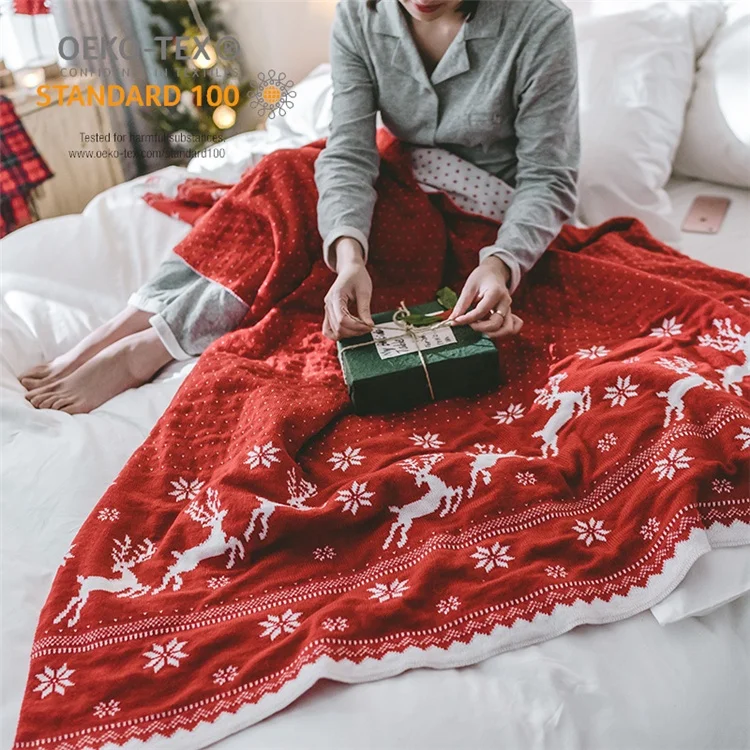 Дешевое мексиканское красное рождественское одеяло из полиэстера, дорожное вязаное рождественское одеяло с логотипом //