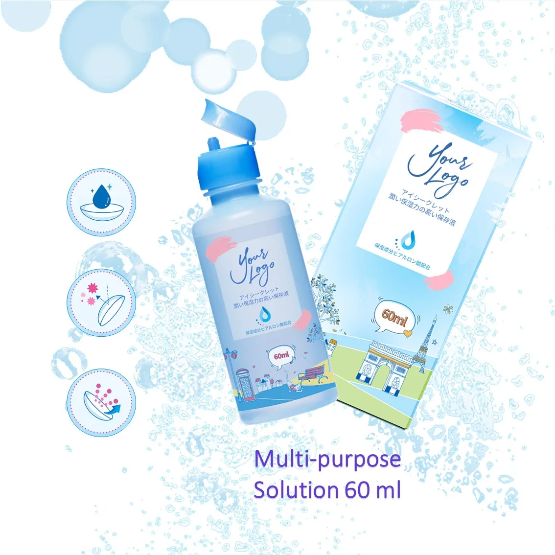Новый раствор для контактных линз 60 мл, жидкость для очистки контактных линз, индивидуальный логотип