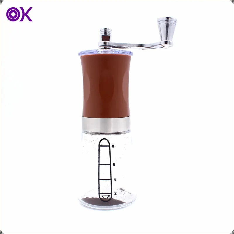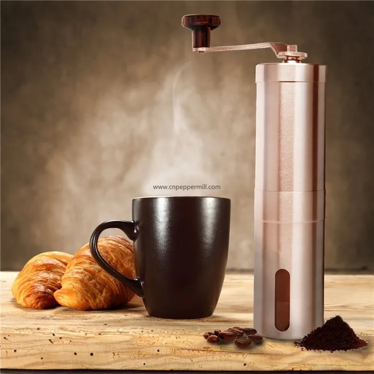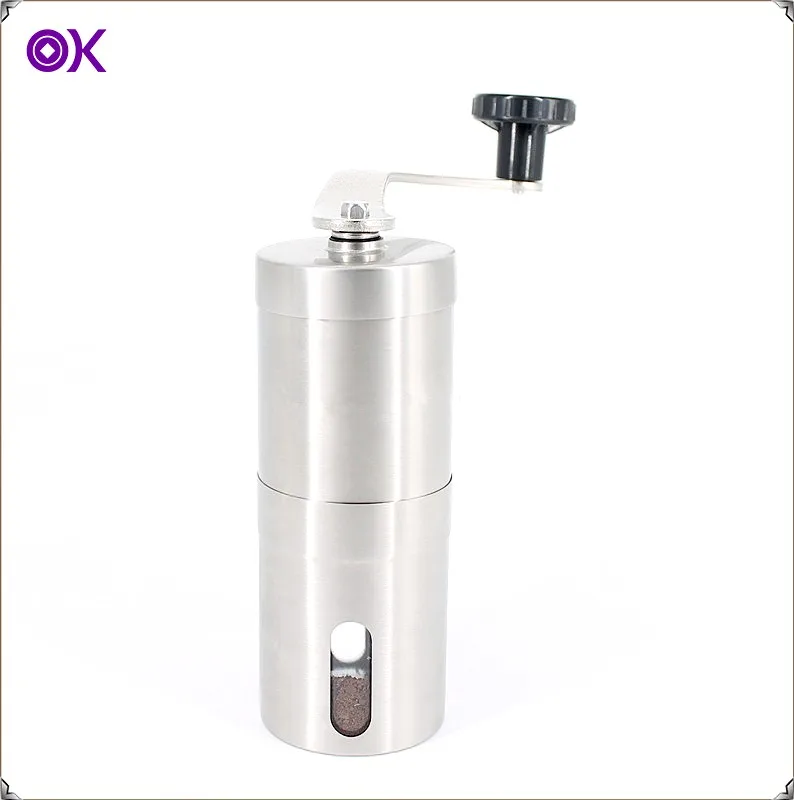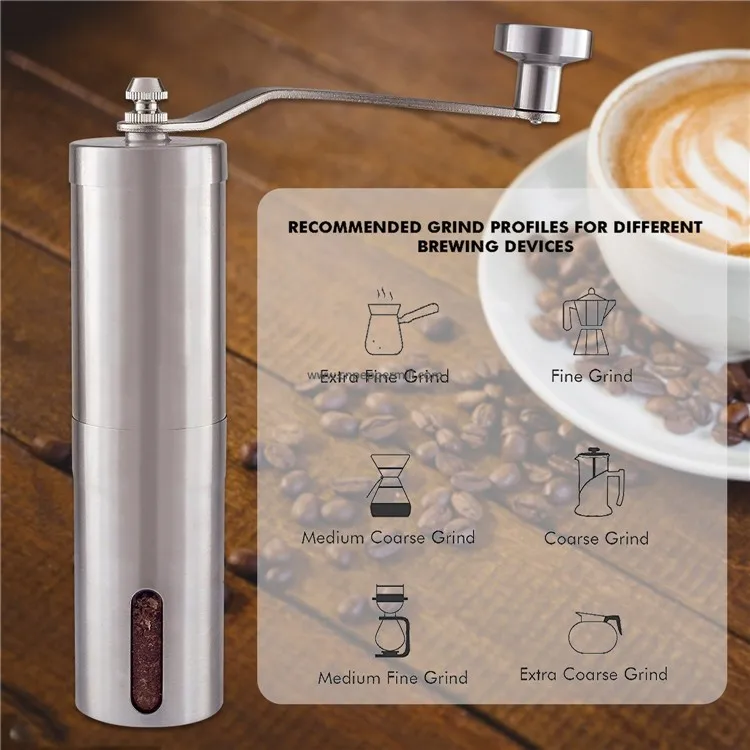 Manual Hand Crank Cordless Coffee Mill with Conical Ceramic Burr and Stainless Steel Body