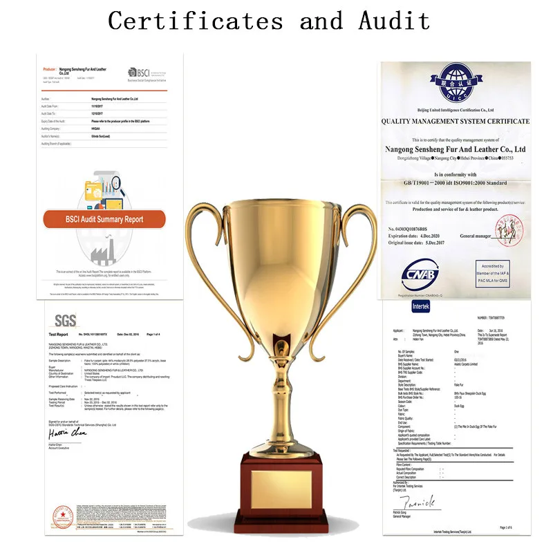 BSCI, SGS, UICC, Reach, Intertek, Hermes.