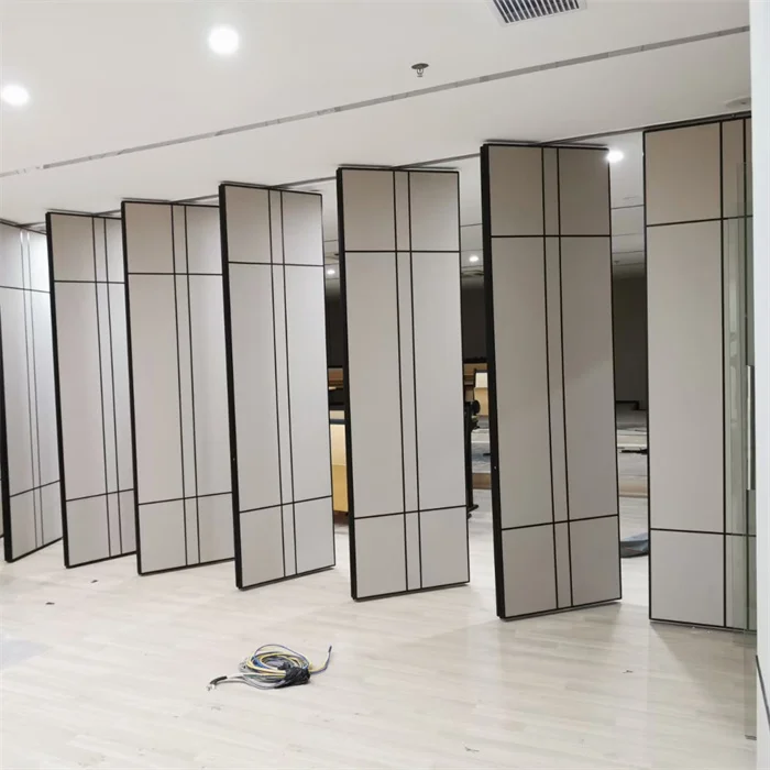 The partition panel is made of high density aluminum frame, special made rubber, excellent sound insulation cotton, finish board, etc. The finish panel is flat and hard; The finish panel is inserted in the aluminum track, assembled with multi-direction wheels. The panel can be stored in many different ways. Huiacoustics movable partition is flexible, artistical and can be moved freely. And it has sound insulation, heat insulation and fireproof function.