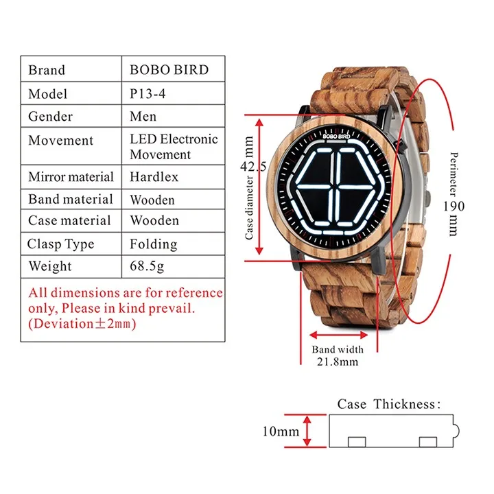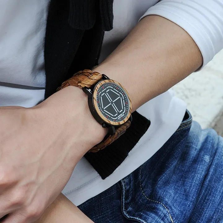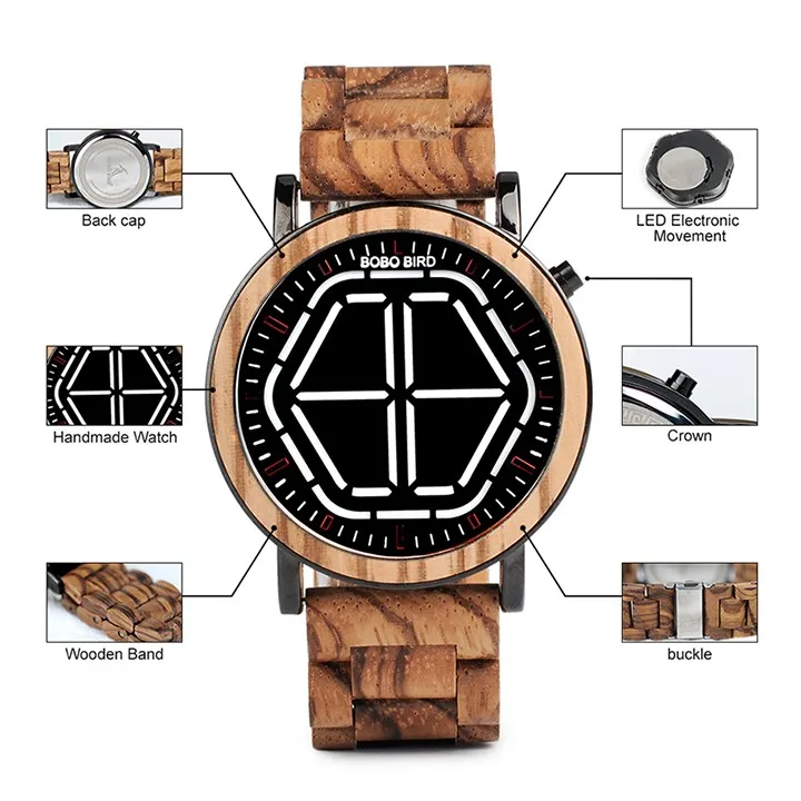 bobo bird New design led electronic wooden watch with fashion Hexagonal White light men watch