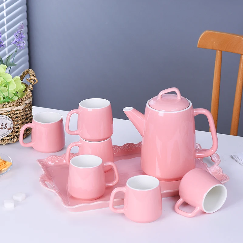 Керамический чайный набор в скандинавском стиле, Бытовой Холодный чайник, чашка для воды с подносом и золотой глазурью, для послеобеденного чая, закусок, чая, набор для воды