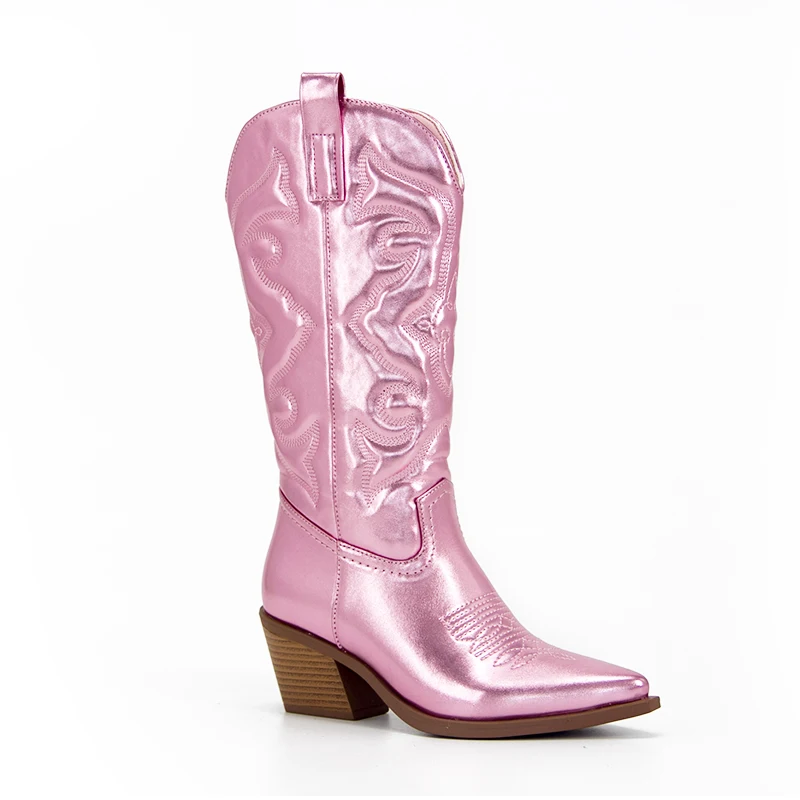 Брендовые Модные женские ковбойские сапоги Westem до середины икры новые 2024 осенне-зимние привлекательные туфли-лодочки на высоком металлическом каблуке