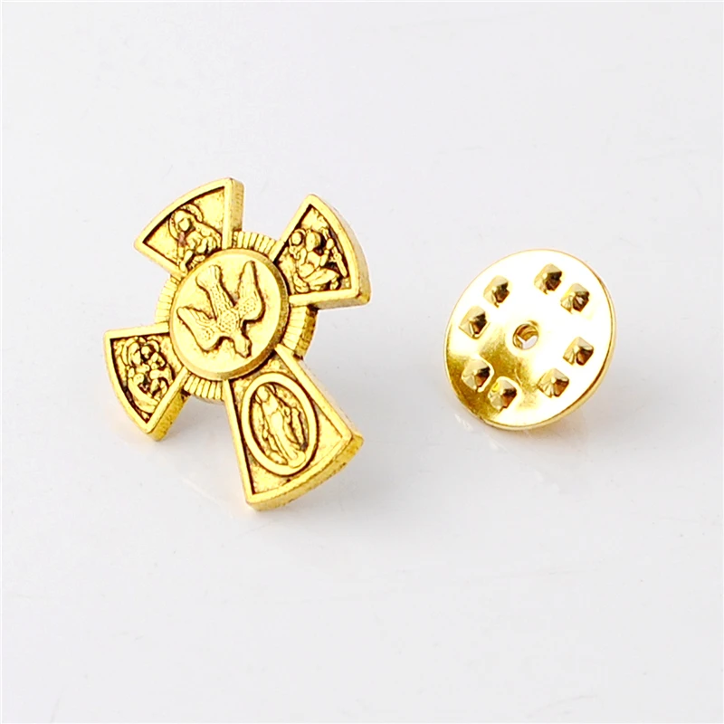 Религиозный значок, броши для рубашки, позолоченный крест с голубей, брошь, булавки для пальто, сочетание и украшение