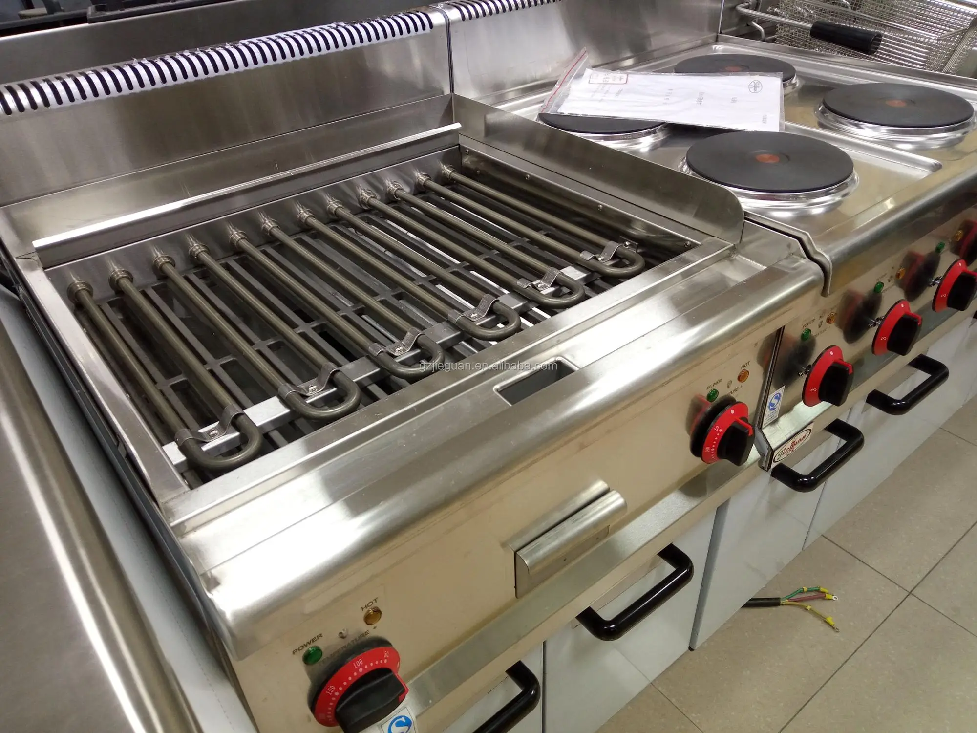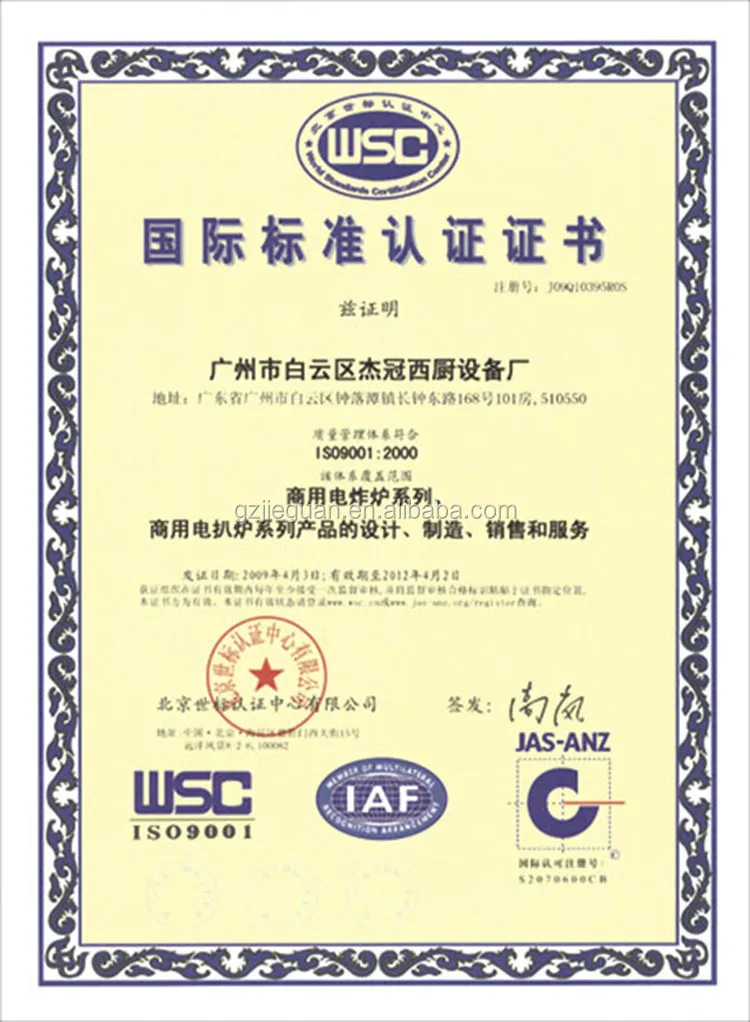 Guangzhou jieguan western kitchen equipment factory is a professional manufacturer, specialized in commercial stainless steel kitchen equipment, restaurant equipment,hotel equipment and fast food shop equipment. The factory was founded in 2003 in Guangzhou China. Main products are: cooking ranges equipment,food warmer display, Fryer,Griddle,Bain Marie,chicken rotisseries,kebab grill,oven ,snack equipment,cake display and most of products got CE certificated.