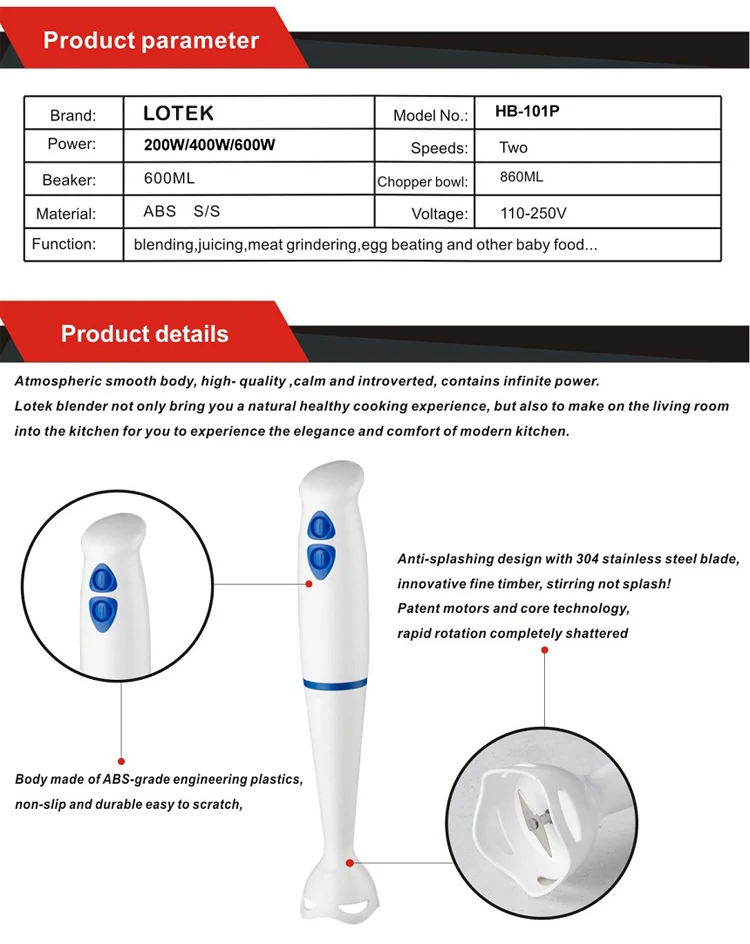 Feature of DC motor hand blender