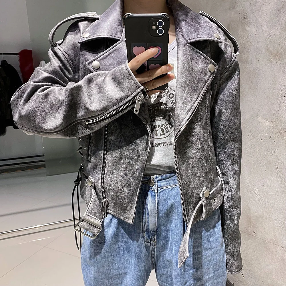 2024 Новая мода на заказ Натуральная Овчина кожаная куртка винтажная стираемая женская мотоциклетная 143,10-159,00 $