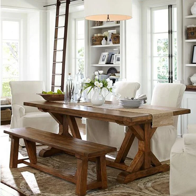 DIY популярный фермерский обеденный стол и скамейка из массива дерева для домашней мебели