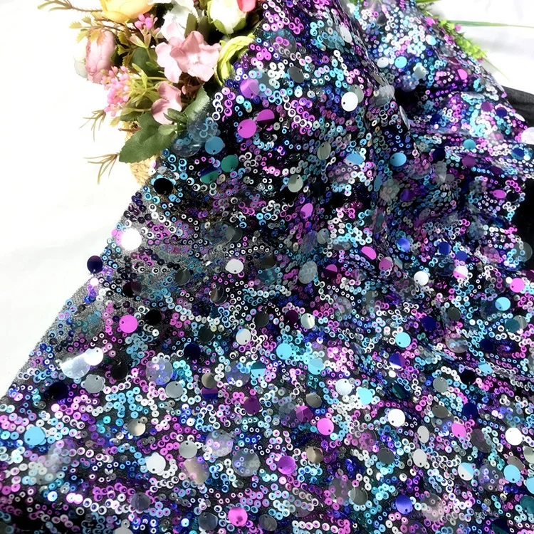 RTS Роскошная объемная Переливающаяся разноцветная кружевная ткань с вышитыми цветами и блестками