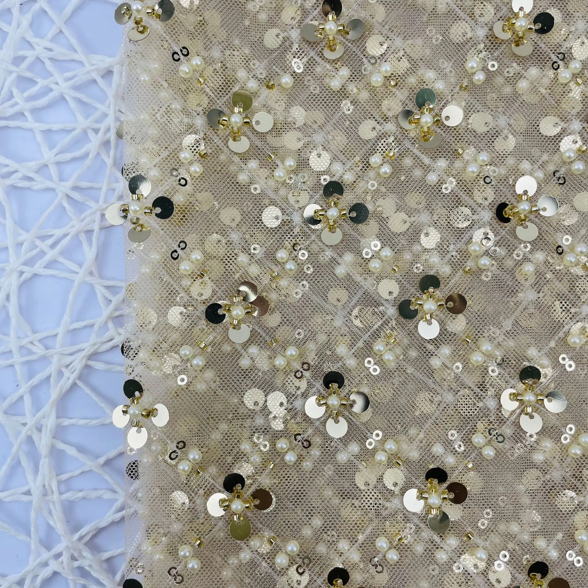 Сетчатая ткань с блестками из 100% полиэстера сетчатая французская кружевная для багажа женская одежда платье