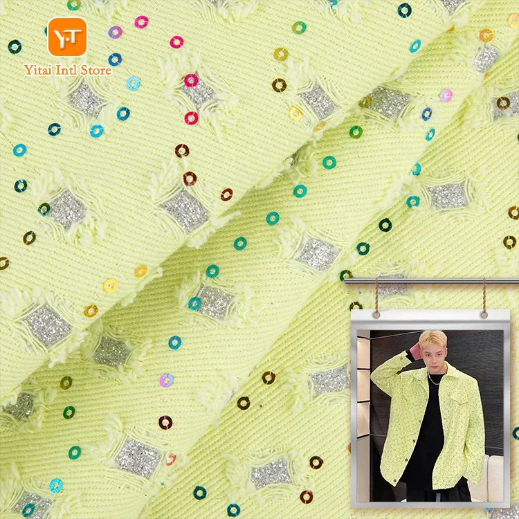 Оптовая Продажа с фабрики стильные цветные горячим тиснением рваные Блестки из джинсовой ткани для платьев и пальто