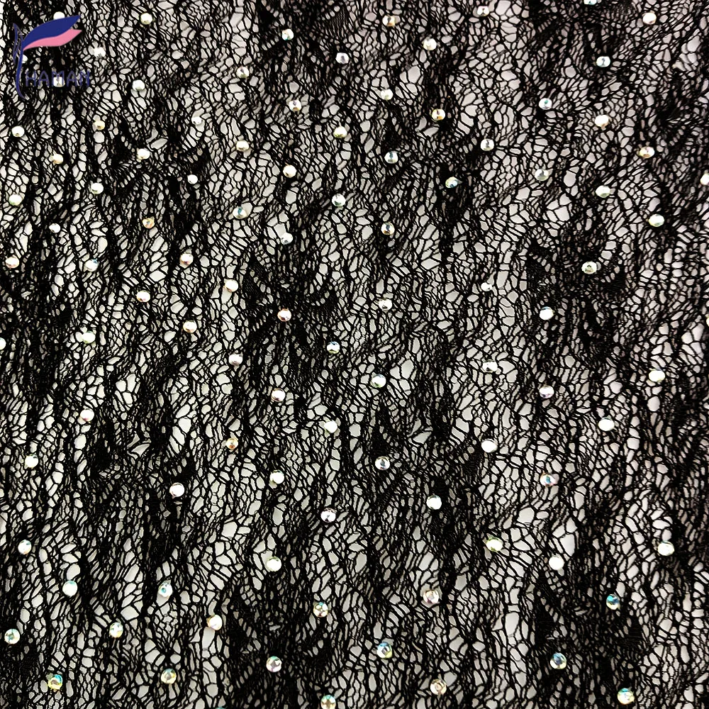 Мягкая 90% нейлоновая 10% спандекс эластичная черная сетчатая ткань со стразами для женской одежды вечерние платья