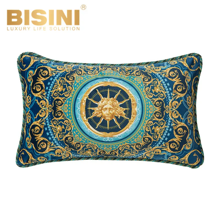 Подушка поясничная в стиле рококо, Классическая, золотистая, солнцезащитная, Бог, Арабика, дизайн Helios, голубая