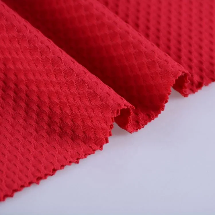 Китайские поставщики уток трикотаж Красный окрашенный 98 полиэстер 2 спандекс ромб жаккардовая ткань для одежды
