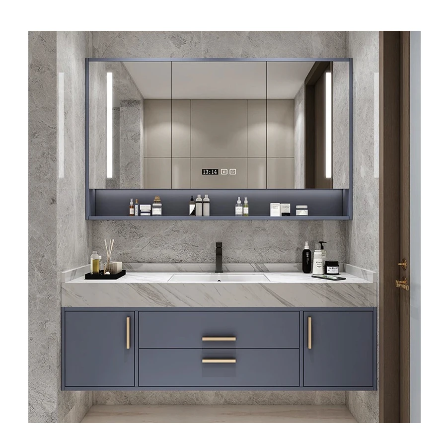 Хорошее качество независимая мраморная столешница одинарная керамическая раковина деревянный шкаф для ванной комнаты