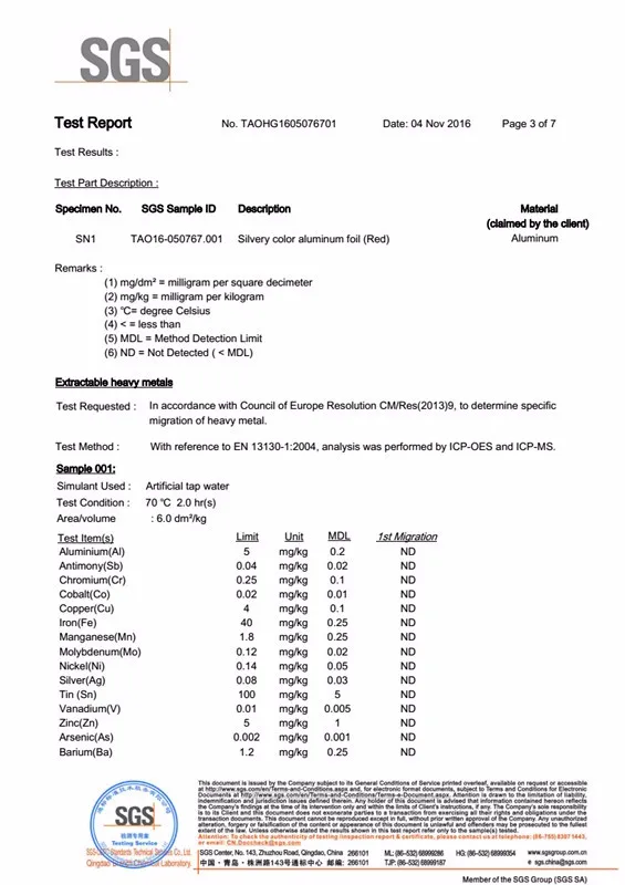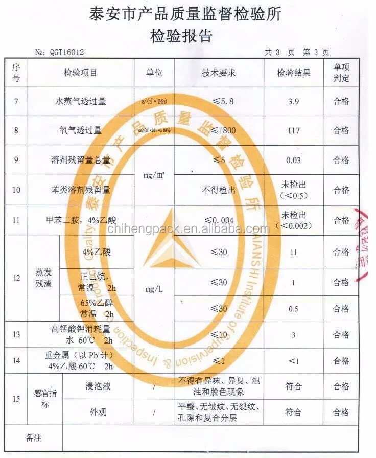 3. Certification: food grade