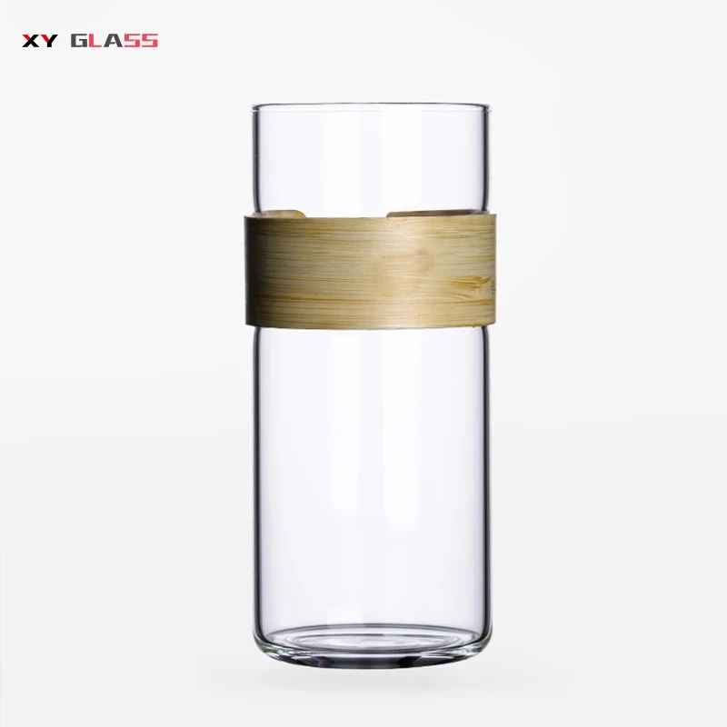 Оловянная стеклянная чайная чашка с бамбуковым рукавом и логотипом на заказ