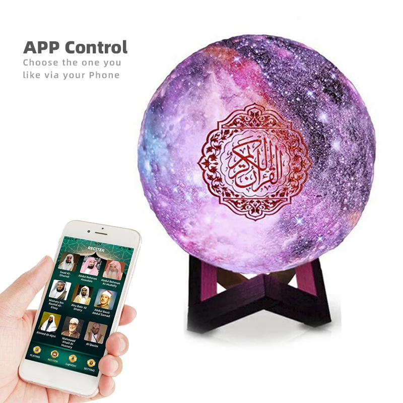 New design islamic gift projection portable quran moon lamp speaker with APP control