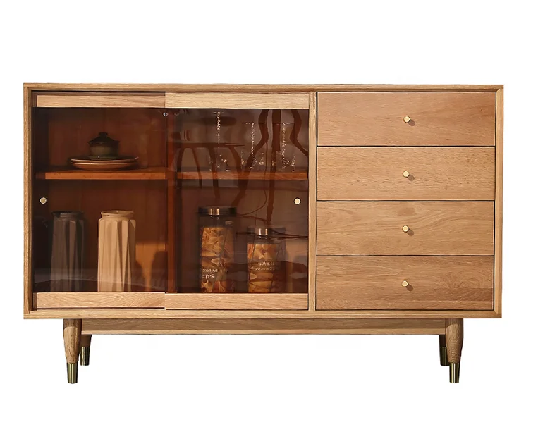 Новая многофункциональная стеклянная раздвижная дверь из массива дерева, медный буфет на ножках