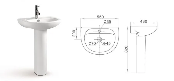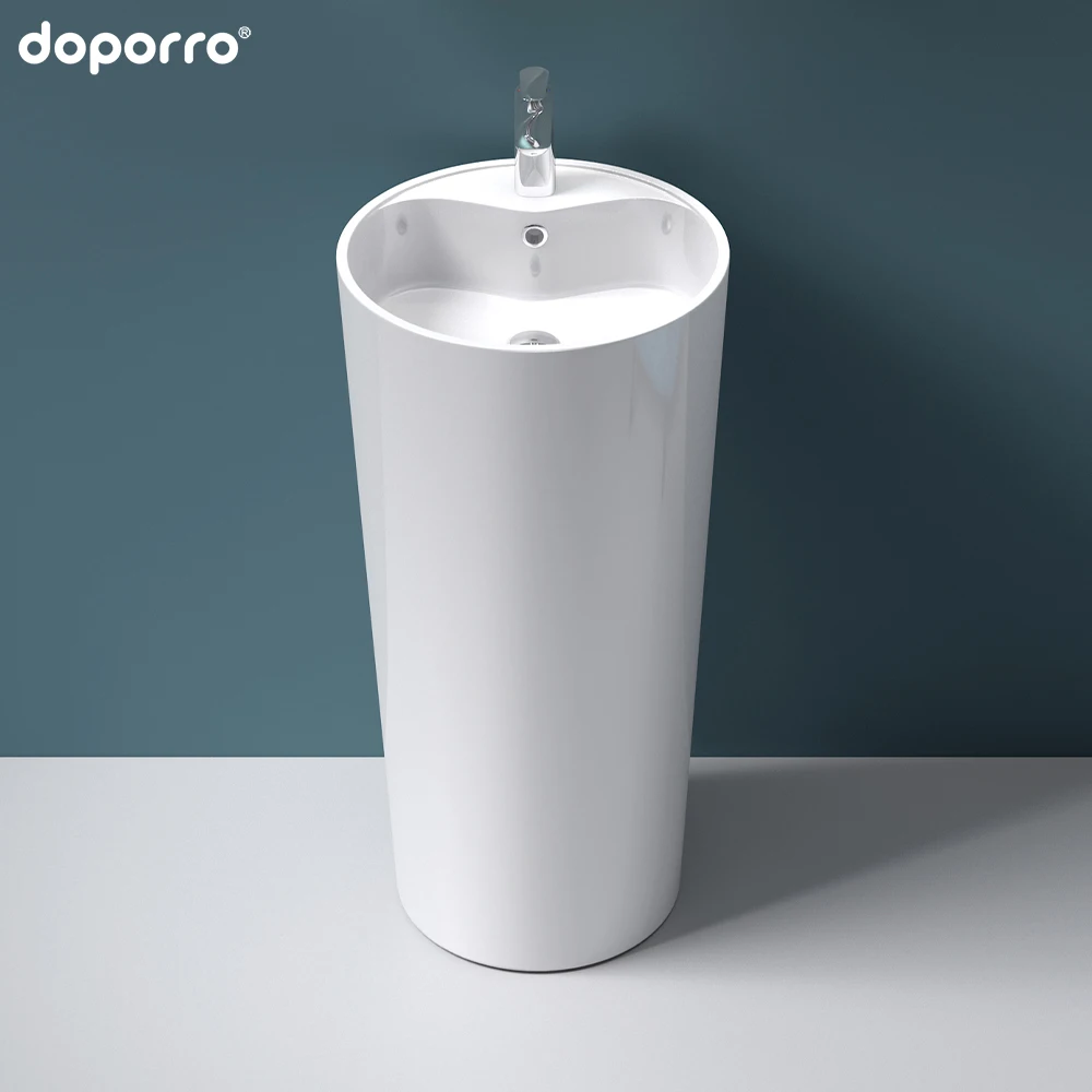 Single-hole hotel sanitary ware floor mounting soild porcelain bathroom pedestal basin