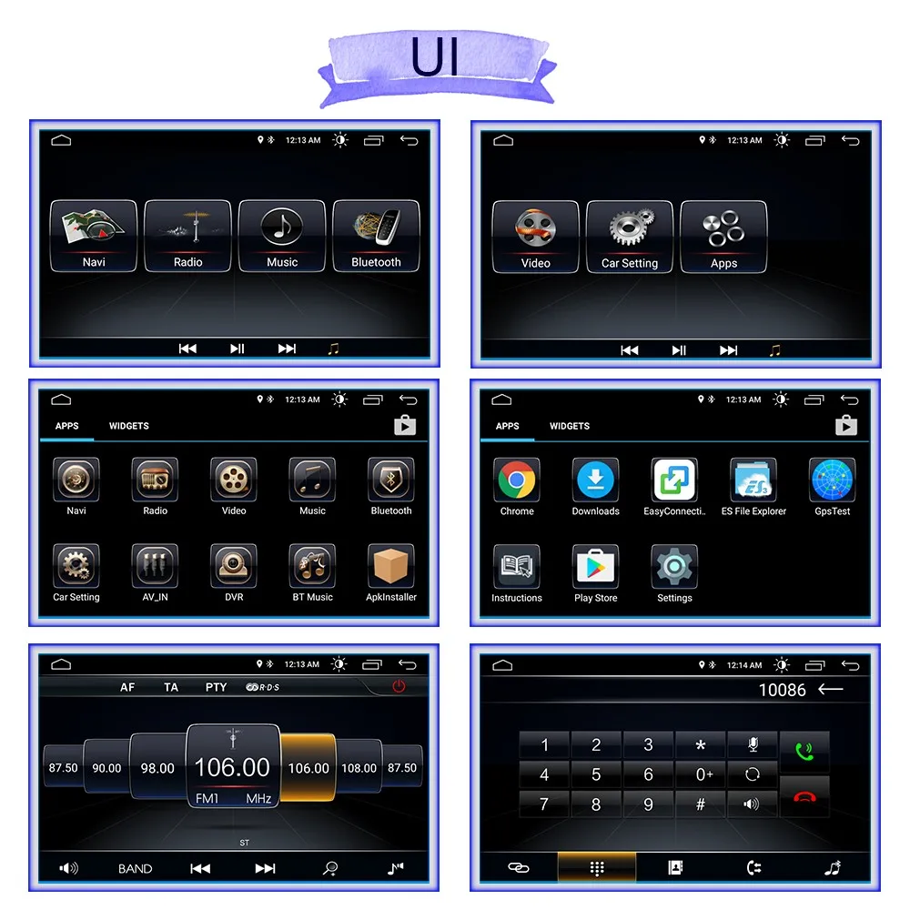 | Часы/дата/неделя | Вы можете перетаскивать Панель поиска, прогноза погоды, музыку/радио/bt-стерео плеер, приложения или другие закладки в главном меню для отображения |