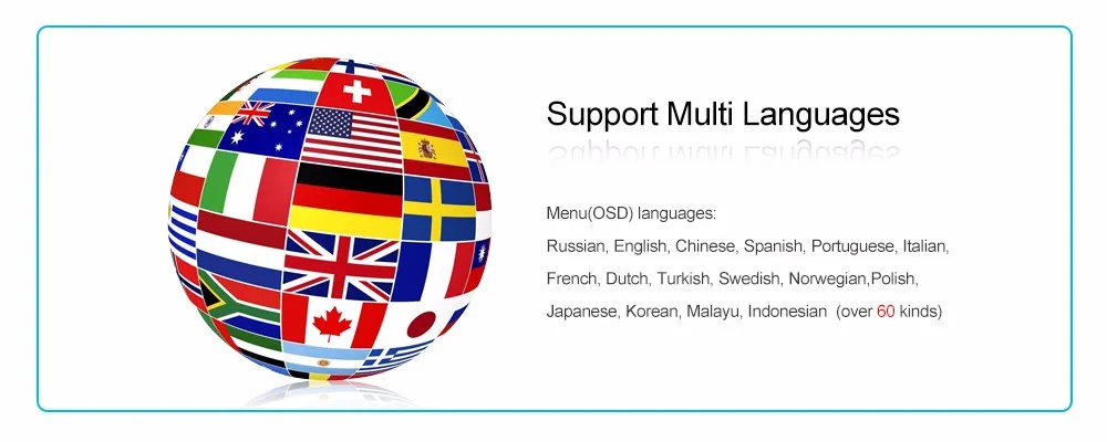 | Языки меню (OSD) | Русский, английский, китайский, испанский, португальский, итальянский, французский, голландский, турецкий, шведский, норвежский, польский, японский, корейский, малайский, индонезийский (более 60 видов) |