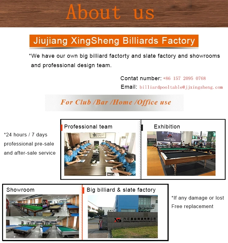 ---We are professional factory to produce pool billiard snooker tables for 9years.And our company culture is Quality first,Competitive price and Perfectl service.