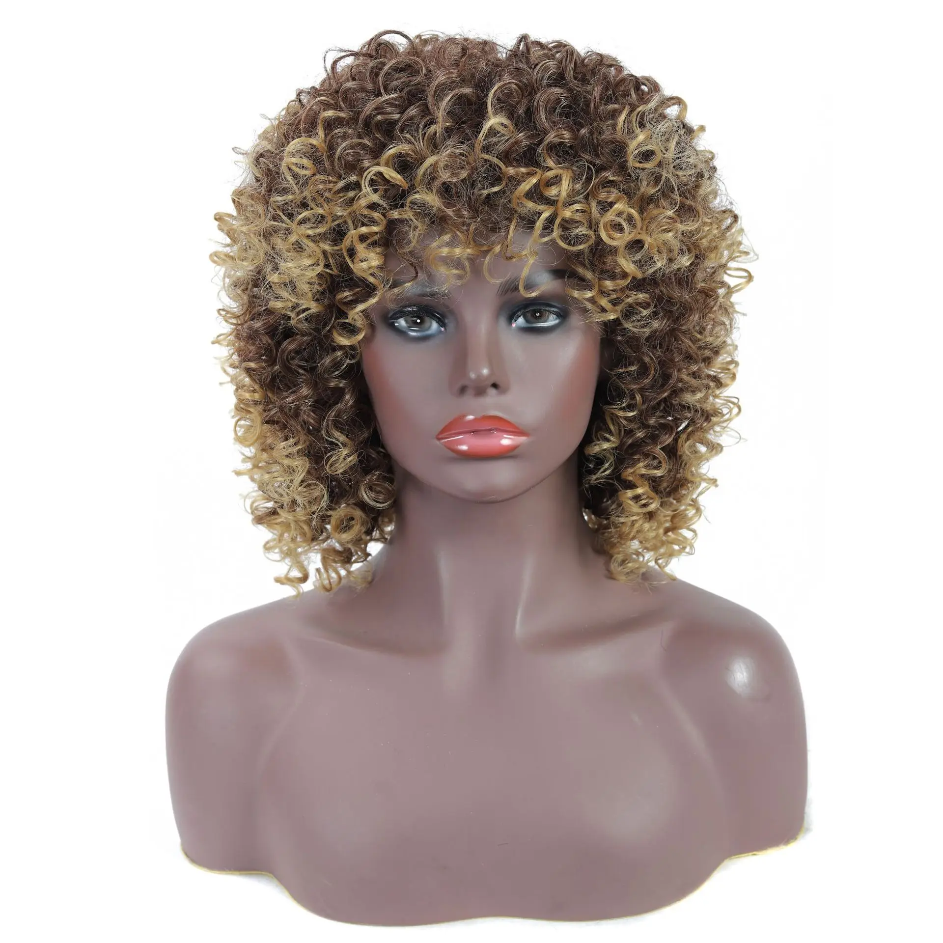 Взрывобезопасные маленькие вьющиеся парики, африканские женские парики средней длины, парики, головные уборы, сделанные в Америке парики