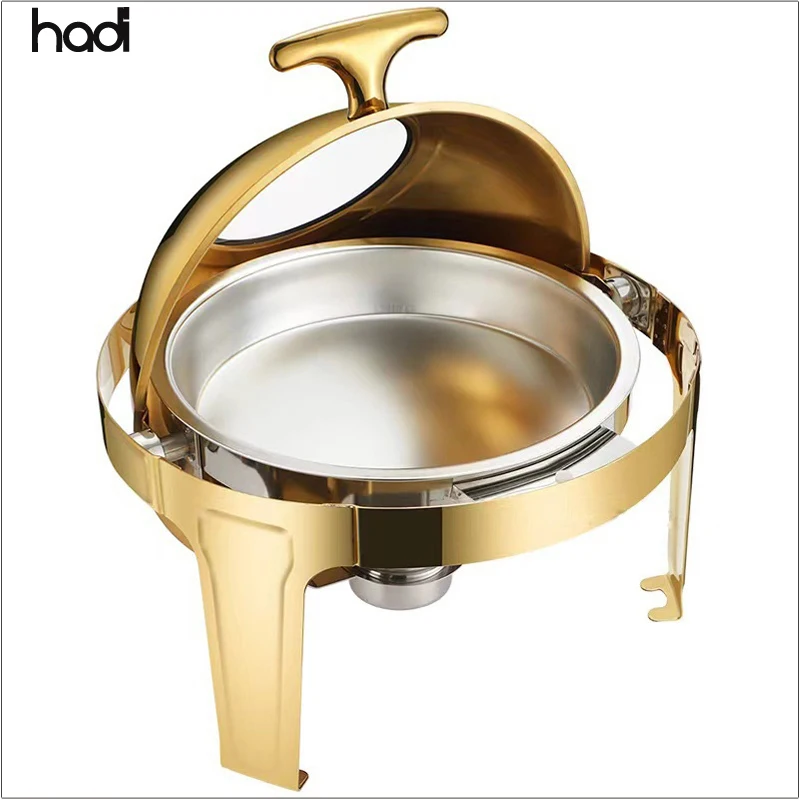 HADI оптовая продажа роскошная тарелка из нержавеющей стали с золотым стеклянным окном Золотая для фуршета отелей
