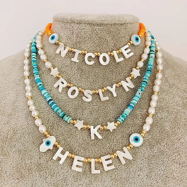Медные бусины с пресноводным жемчугом на заказ, позолоченные бусины, буквы сглаза, подвески, ожерелье 18 дюймов для женщин, ювелирные изделия