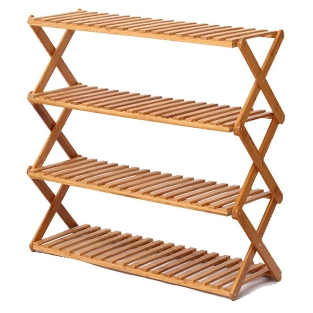 Бесплатный образец 4-уровневая многофункциональная свободно стоящая полка для обуви Складная органайзер хранения Бамбуковая