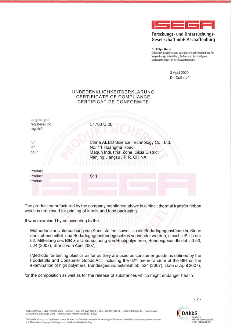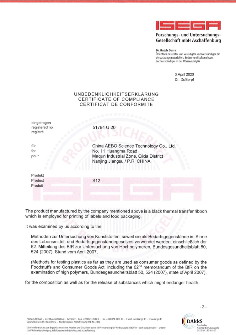 Our TTR products have passed through ISO9001, ISEGA and SGS certificates. Trusted by clients over the world, AEBO has been built high reputations in the areas of thermal label printing and barcode printing.