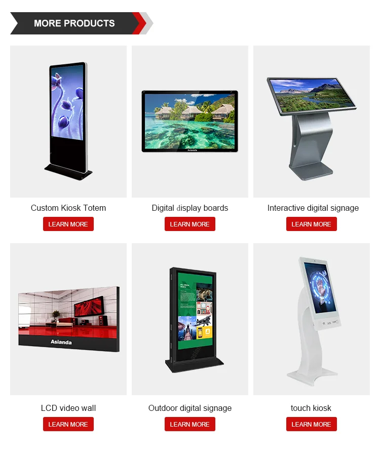 4.Asianda®Является известным производителем для цифровых вывесок и ЖК-видео стены с более чем17 летОпыт! (один из первых производителей рекламного оборудования в Китае)
