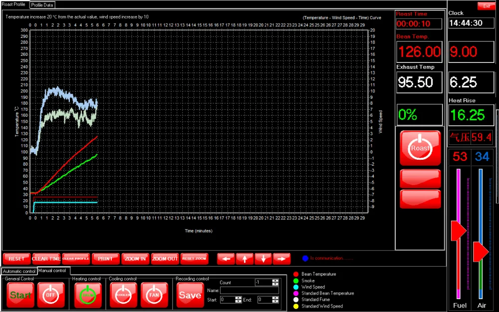 Auto generated roasting data, transferable via Bluetooth