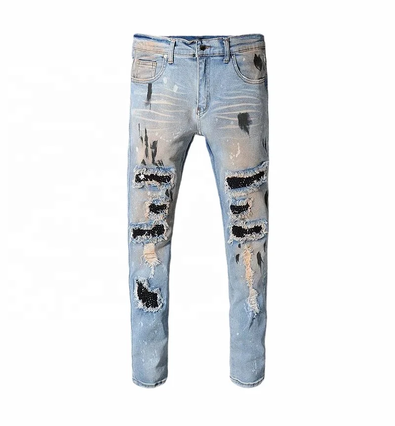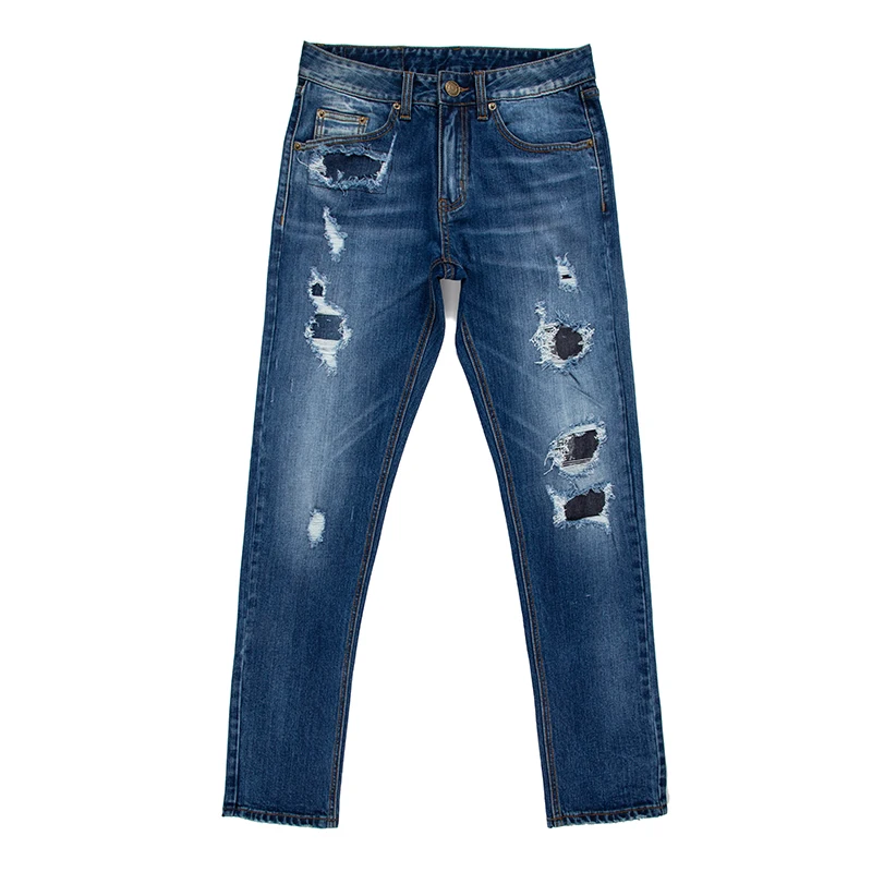 Винтажные мужские джинсы высокого качества 100% хлопок мужские летние джинсы прямые джинсовые брюки со стразами рваные джинсы для мужчин