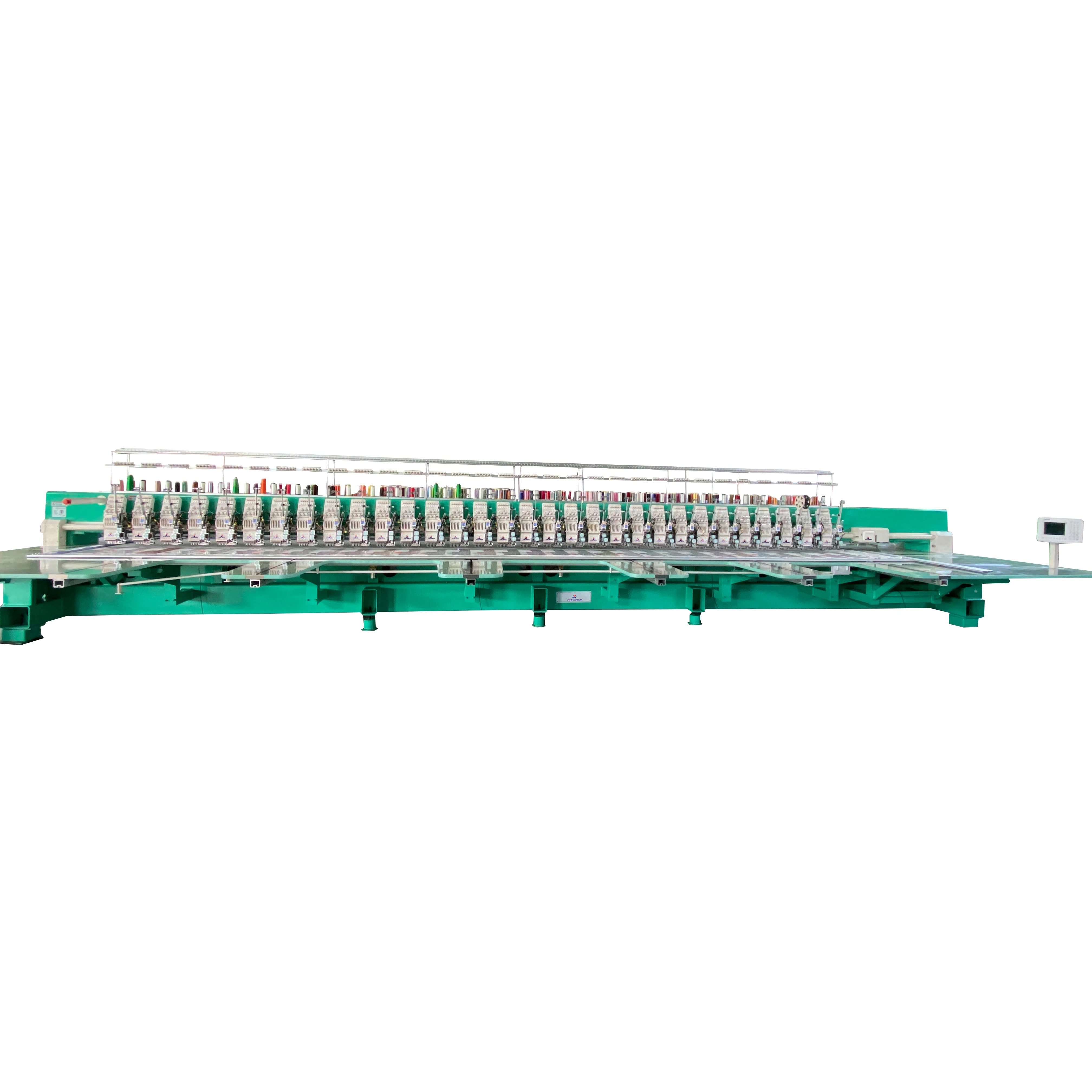 * Suitable for flat embroidery, cap embroidery and finished garments embroidery like T-shirt * perfect choice for personalized design * Color 10 inch LCD display showing real time stitching * Storage of 500 designs * 5 million stitches storage of a single design * Storage of 200 million stitches totally * Automatic color change, Auto cutter,Thread break detection * Pre-sew design trace capable *Pre-time design trace capable * Real-time show of sewing stitch * Fast data/design transmission by USB,network,WIFI * Recognize various format like DST,DSB & MORE * 270 degree Wide cap frame unit * Maximum speed 1200 RPM * Electricity: 110V/60Hz or 240V/50Hz | * Laser positioning function * Different sizes of hoops / frames are changable according to your needs * Multi-language operating systems |