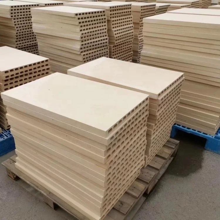 At present the use of Refractory Mullite Cordierite Ceramic Plate used for Sanitary mullite Kiln shelves has become a trend .The cordierite mullite hollow and solid plates are used more often in sanitary tunnel kiln,shutle kiln with the connect