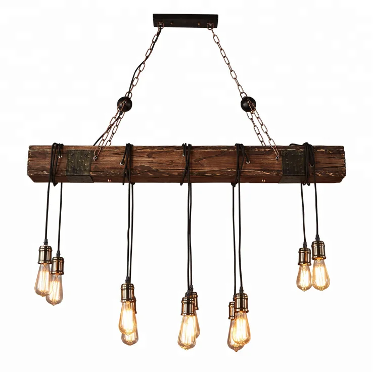 Подвесной светильник в сельском стиле из темного Потертого дерева, большая линейная лампа-остров, люстра с 10 лампами, освещение для подвесного потолка