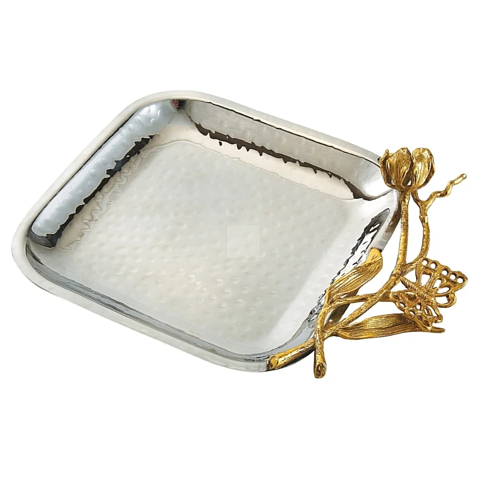 Metal Serving tray butterfly tray for home & hotel Silver Color Modern Design Metal Serving Tray