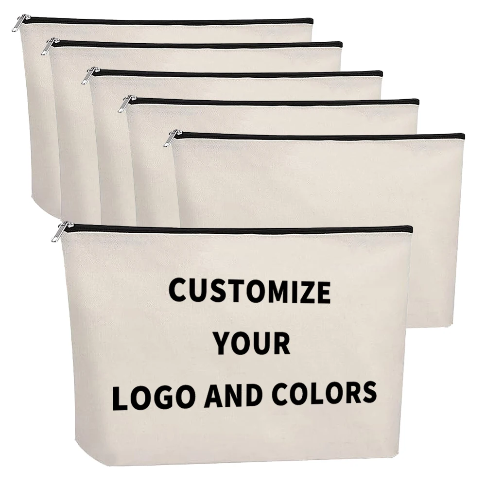 Маленькая Экологически чистая индивидуальная хлопковая пустая сумка на молнии сумки для макияжа простая белая хлопчатобумажная холщовая косметичка с