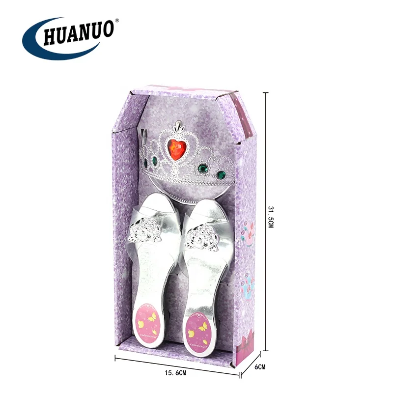 Детский Набор для красоты обувь принцессы на высоком каблуке алмазная Хрустальная тиара игры пластиковые игрушки