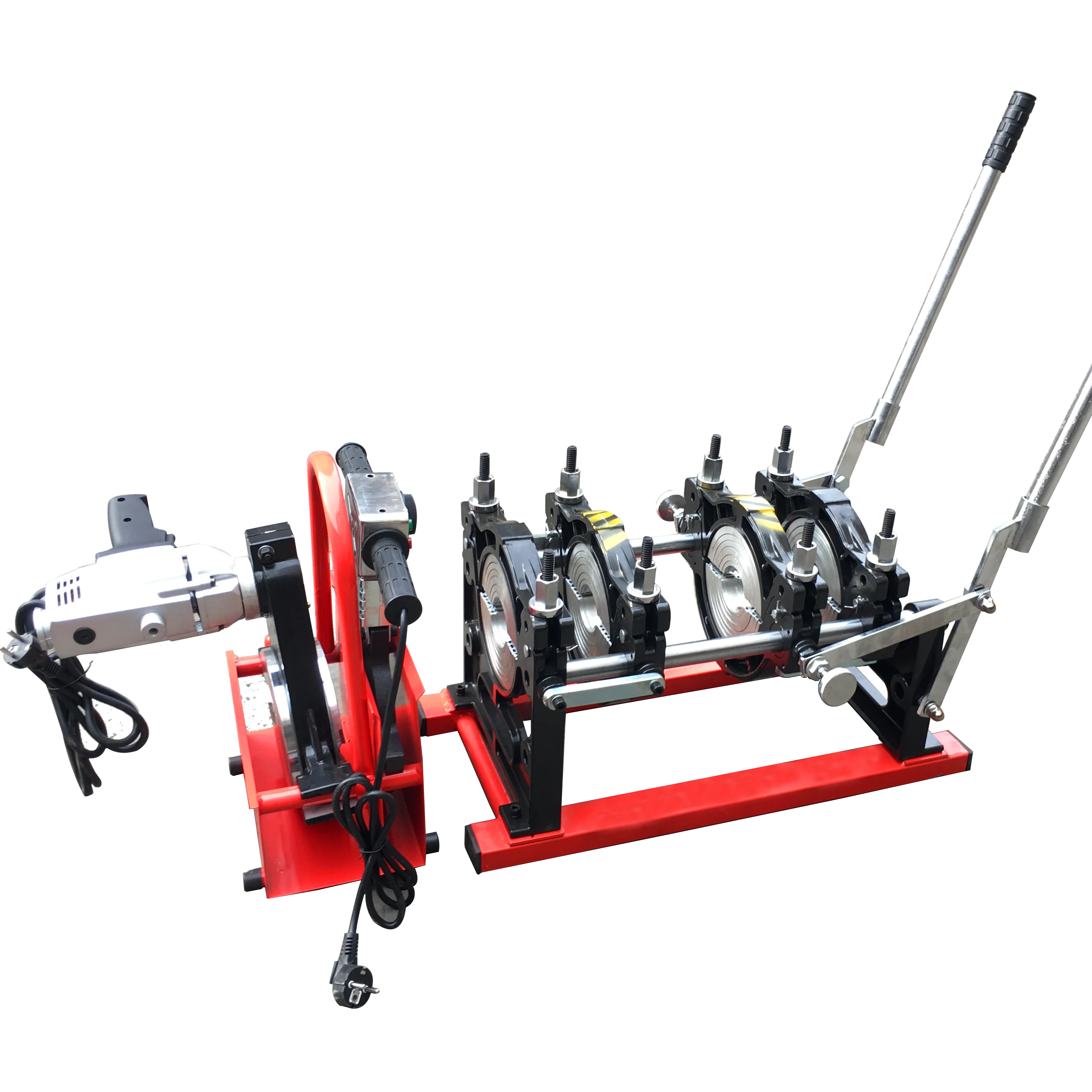 1. Suitable for fabricating PE reducing tee in a workshop. Integrated function of welding and taping enables to complete the whole fabricating process