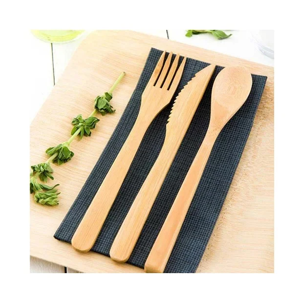Набор деревянных столовых приборов ложка вилка палочки для еды с чехлом хранения многоразовая посуда обеда и ужина дома