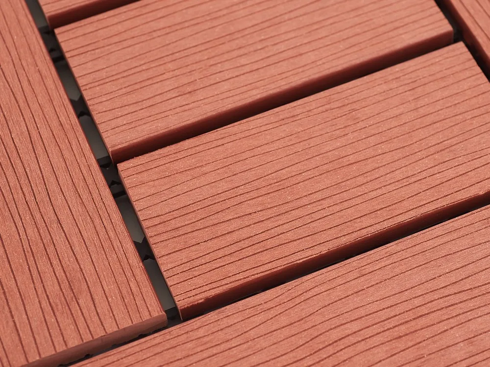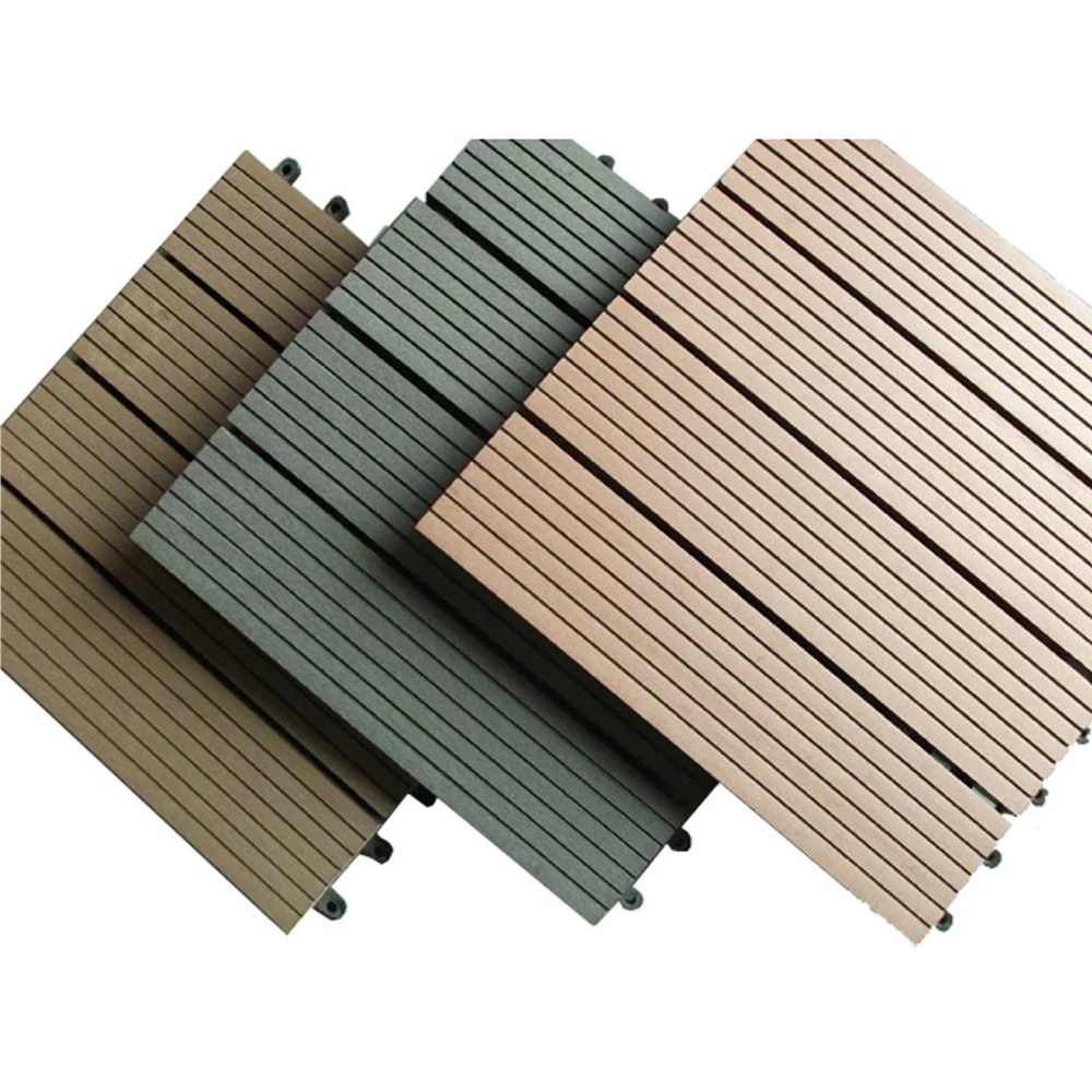 Wood grain surface WPC floor tiles with 6 slats on top hollow back