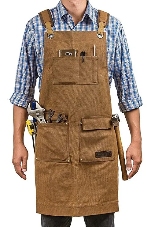 Our Handmade apron are true work-wear, fitting most bodies and activities, offering you great comfort, durability, functionality. It has clean design, with easy access chest pockets and many utility loops so you can carry everything you need. And NO lower pockets that can accumulate hair, nails, or even sharp blades. Sleek apron for a professional look, stylish metal hardware.