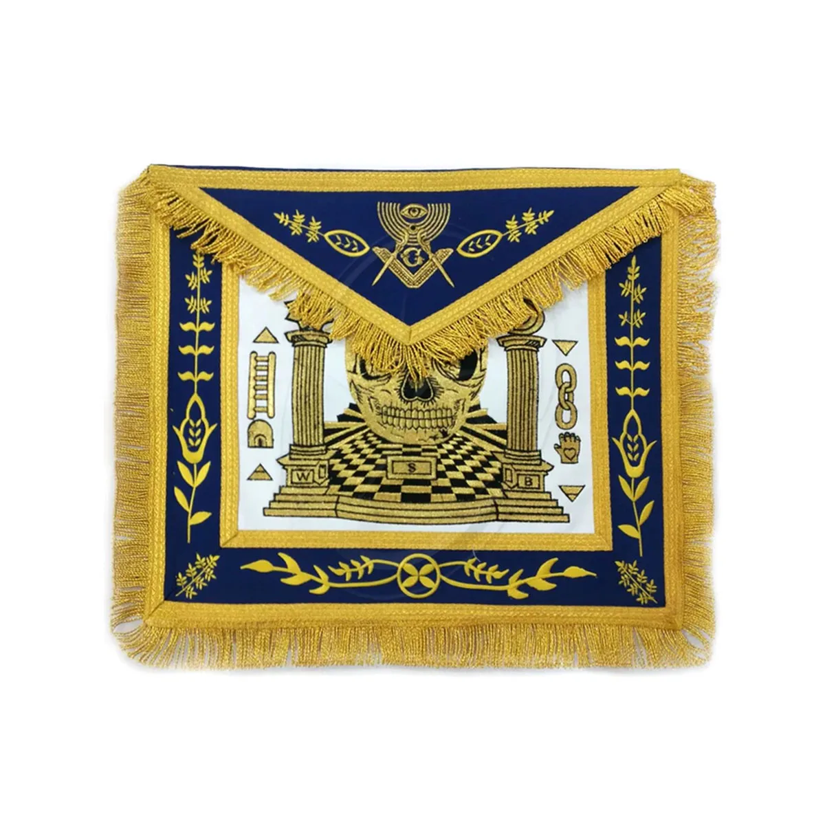 ENGLISH REGALIA: all Aprons in size of 14x16 inch with handmade tau level backing with pocket belt metal snake set enclosur, gold/silver tassels and gold fringe with braided on the edge as per the ranks Apron.